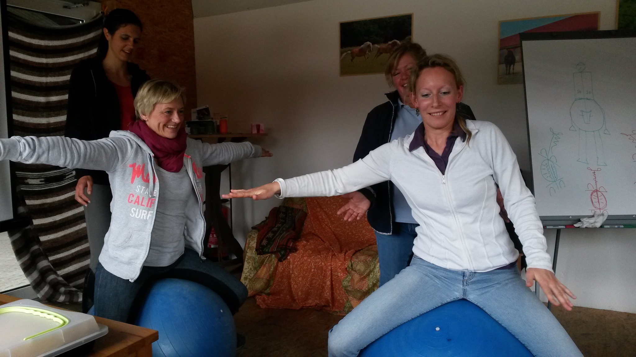 Das alles geschieht zunächst im Stand und dann auch in der Bewegung. Wenn alles gut und leicht klappt, kommen Übergänge und Seitengänge hinzu.
